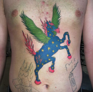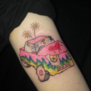 Big Boy 247 is a tattooer from the self taught background and have worked in collectives and as a traveling tattooer the past 5 years, now he is based in Stockholm at Deepwood Tattoo. With a style that is based in the childish you can find designs that are colorful, misspelled and ridiculous but also tough, flaming and greyscale motives. BigBoys favourite to tattoo are burning vehicles, especially to make clients custom cars. To Queer Tattoo Expo he will bring his flashbooks that you can look trough and choose a flash!